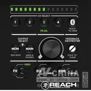 Reach另一個(gè)強(qiáng)大的功能,是可通過iOS和安卓設(shè)備上的RunningMan Connect™應(yīng)用軟件來完成無線控制。RunningMan Connect應(yīng)用軟件讓用戶掌控一切——從簡單的電平調(diào)節(jié)到各種專業(yè)功能,如3段通道均衡、內(nèi)置反饋消除器、針對(duì)特定應(yīng)用的音箱模式、16種人聲/樂器效果和3種可調(diào)用的記憶設(shè)置(可讓您迅速回歸最喜歡的設(shè)置)。集成的6通道數(shù)字混音器為您提供所需的輸入、處理和控制,讓Reach成為終極的一體化專業(yè)擴(kuò)聲系統(tǒng)。
