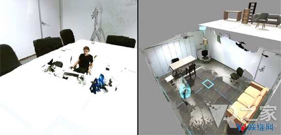 微軟 開始探索將VR和AR的優(yōu)勢結(jié)合起來,在混合現(xiàn)實中創(chuàng)造性地操縱空間與時間。他們創(chuàng)建了一個混合現(xiàn)實環(huán)境,其中用戶可以看到周遭環(huán)境的實時表示。與其他方法相比,用戶不是通過機載攝像頭看到圖像。相反,微軟為房間配備了八個安裝在天花板上的Kinect攝像頭。攝像頭的數(shù)據(jù)將組合成一個完整的3D房間重建視圖。用戶可以通過VR頭顯看到重建的環(huán)境實時視圖。