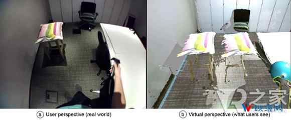 微軟團隊將用戶的虛擬視點與他們在房間中的實際位置相匹配。這意味著物理對象能夠?qū)R虛擬表示。由于數(shù)據(jù)是實時傳輸,因此用戶能夠?qū)崟r感知到物理環(huán)境中的任何變化(如家具的移動或進入房間的人)。用戶仍然可以觸摸和感受到現(xiàn)實世界,并同時獲得執(zhí)行幾乎所有視覺變化的能力。