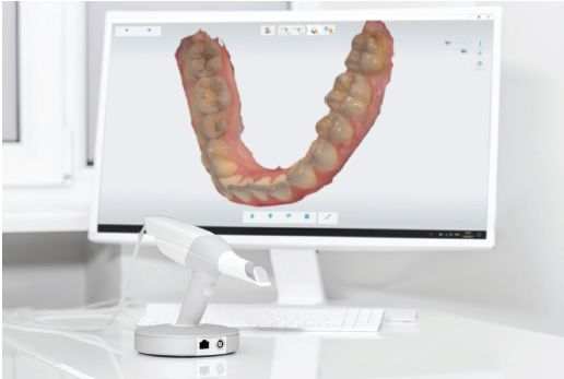 3D掃描技術在醫療行業中的應用飛速增長。例如,牙科中采用口腔內掃描儀(IOS)直接采集光學印模(圖4)。在制作假體修復體時,如鑲嵌物、高嵌體、頂蓋和牙冠,需要達到微米級3D圖像精度。IOS簡化了牙醫的臨床操作程序,省卻了對石膏模型的需求并減輕了患者的不適。