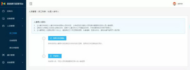新增加了員工信息批量添加和導出操作,并且員工人臉識別照片支持從本地上傳和從設備直接注冊;