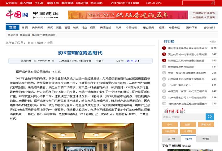 最近一段時間,影K.影吧的話題很熱。各大媒體紛紛報道,由于KTV行業的發展進入高度競爭時期,從前年開始就已經有老板開始投資微影吧,去年也有非常多的人投資做影吧,進入到今年下半年,越來越多的投資人開始關注投人影K.影吧,或是新開、或是轉型、或是融合?粗Ч麑映霾桓F的影吧,影吧旳確一直效益不錯,微影吧開業生意很火,鐳聲威推薦衛星音響影吧系統,給投資影吧老板們大大將低設備成本,提高微影利潤空間,工程商安裝也方便。提高工作效率。還有一部分需求是唱歌加看電影也叫影K,影K市場越來越多受到關注,鐳聲威影K,影吧受到媒體高度關注,有百度新聞,新浪新聞,搜狐新聞,中訊網等等.........