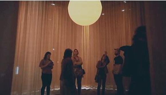 紗幕圍繞中間發光的橙色“太陽”不停飄蕩,人們可以進入其中與之互動。