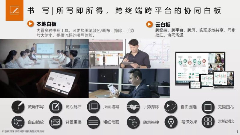 威屏科技憑借富士康在大尺寸面板產業鏈的優勢、成熟的生產管理經驗和完善的品質管理體系,秉承富士康 “品質是價值與尊嚴的起點,是公司賴以生存的命脈”的經營理念,旨在為用戶提供高品質的產品和一站式的會議體驗。