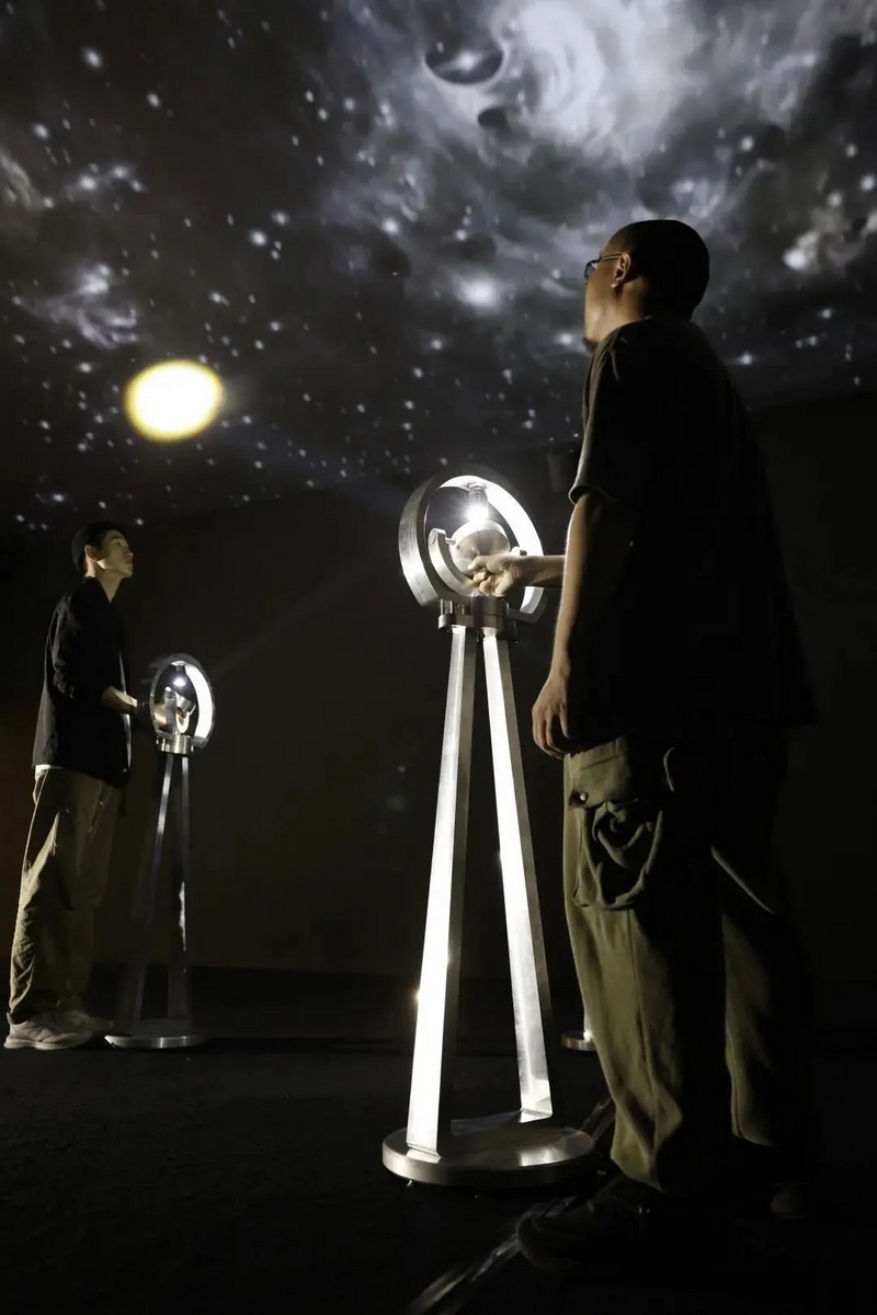 觀者通過操縱光控互動形式,搜尋暗藏于空間(宇宙星云)中的聲音,光點所尋之處將呈現由著名戲劇演創人員錄制的經典戲劇獨白。將時間與空間、經典與當下、公眾與演創人員置于同一維度:現實生活的戲劇時空,是謂剎那即永恒。