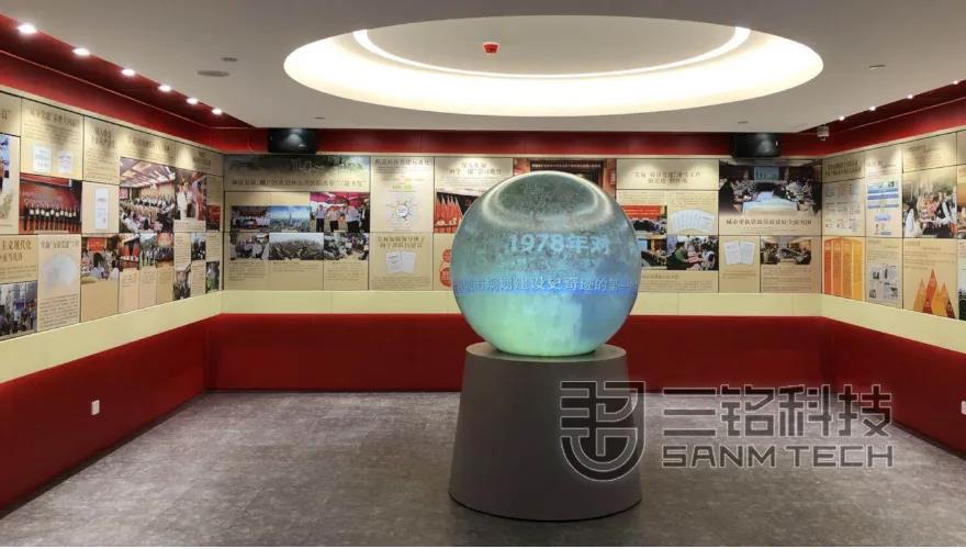進入展廳內(nèi)部,到“改革開放和羅湖黨建發(fā)展史”展區(qū),可以通過觸摸球幕設(shè)施了解羅湖作為深圳改革開放原點的故事。