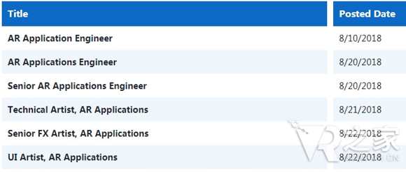 在8月11日,“AR Application Engineer(AR應(yīng)用程序工程師)”的職位空缺出現(xiàn)在蘋果的人才招募頁面上。數(shù)周后,映維網(wǎng)又發(fā)現(xiàn)了五份包含“AR Application(AR應(yīng)用程序)”字眼的招聘啟事。這表明蘋果正在為未來的AR產(chǎn)品招兵買馬。截至今天,映維網(wǎng)發(fā)