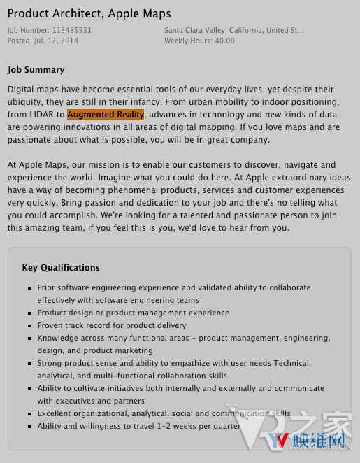 招聘信息顯示蘋果正在研發(fā)AR地圖